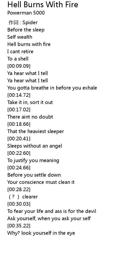 | [00:05.48] | Hell burns with fire |
