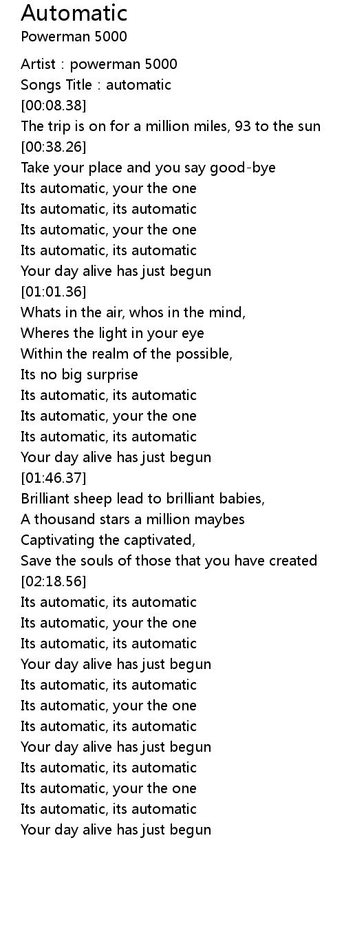 | [00:30.84] | The trip is on for a million miles, 93 to the sun |