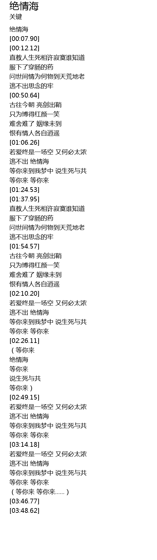 | [00:59.26] | 难舍难了 姻缘未到 |