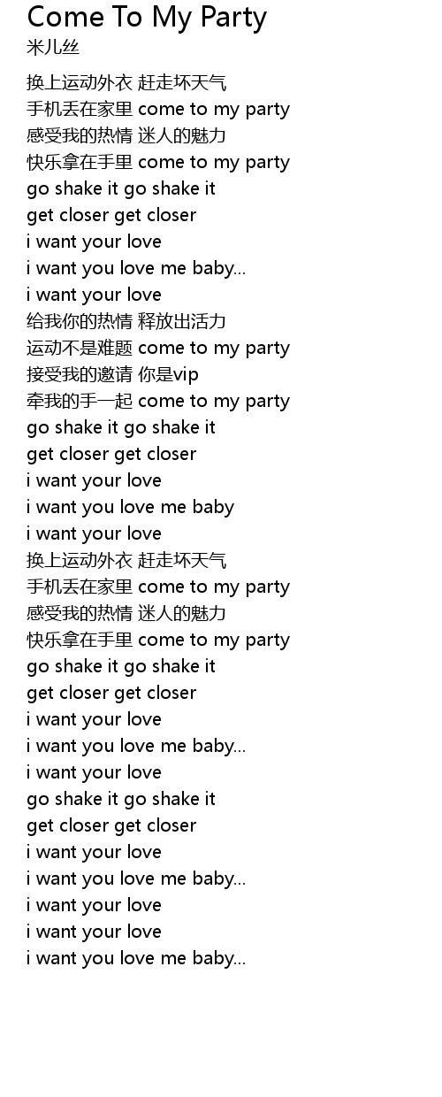 | [01:01.260] | yùn dòng bú shì nán tí come to my party |