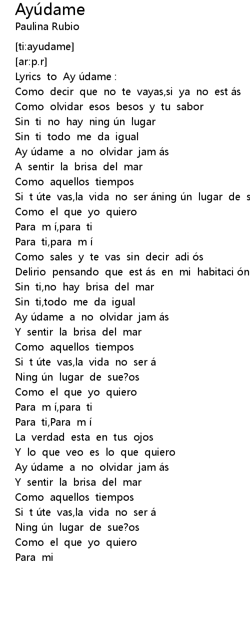 | [00:04.506] | Lyrics to Ay údame : |
