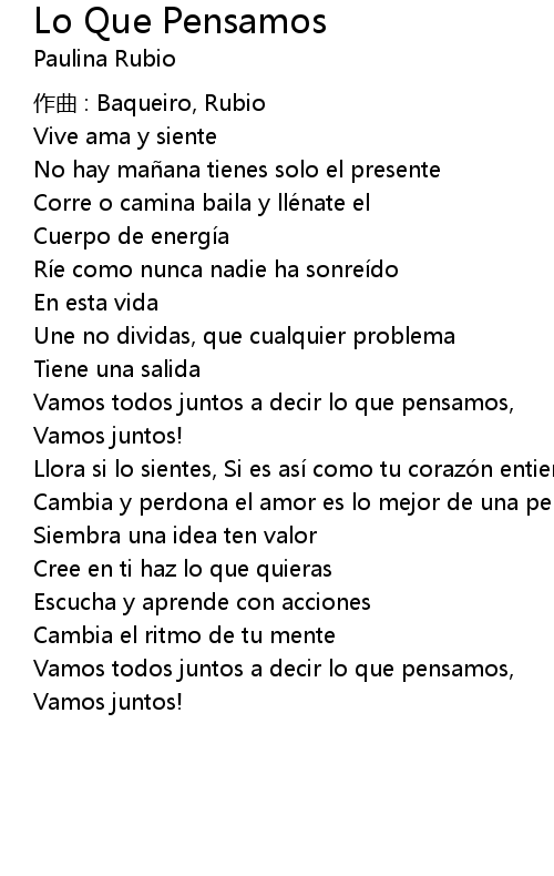 | Song | Lo Que Pensamos |