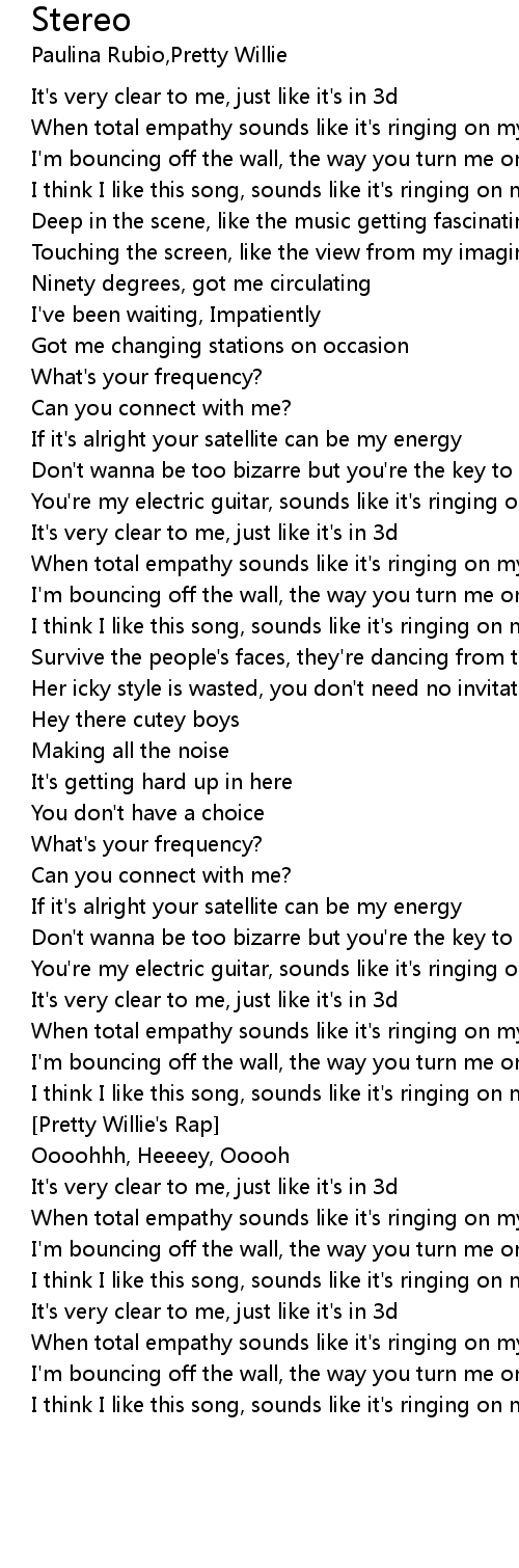 You're my electric guitar, sounds like it's ringing on my stereo |