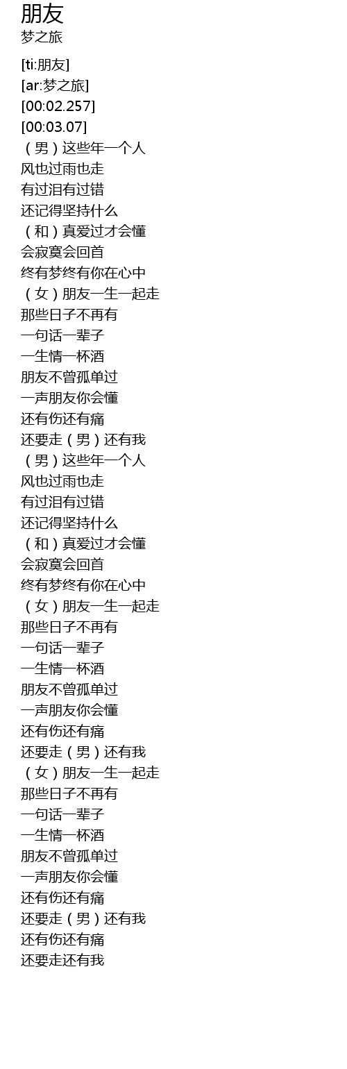 | [02:53.696] | (女)朋友一生一起走 |