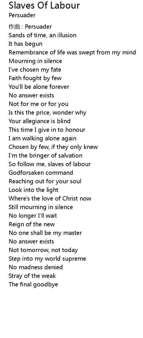 | So follow me, slaves of labour | |