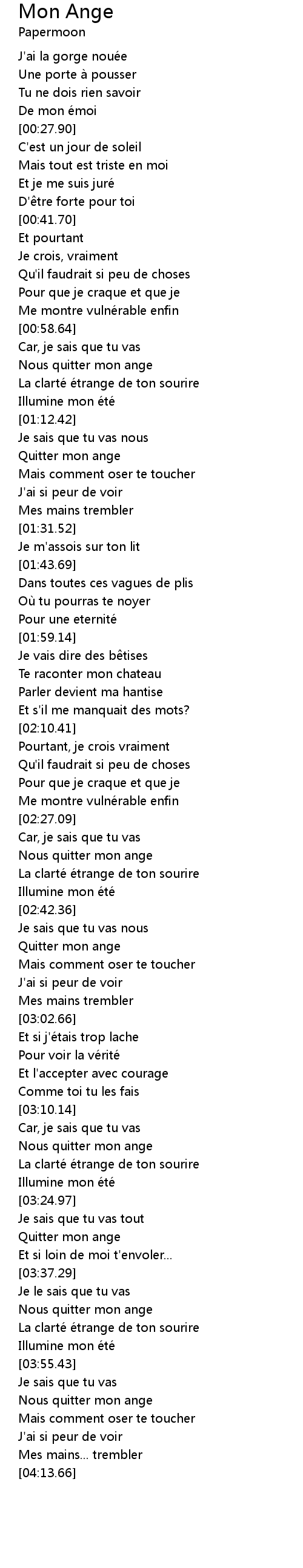 | [03:58.68] | Nous quitter mon ange |