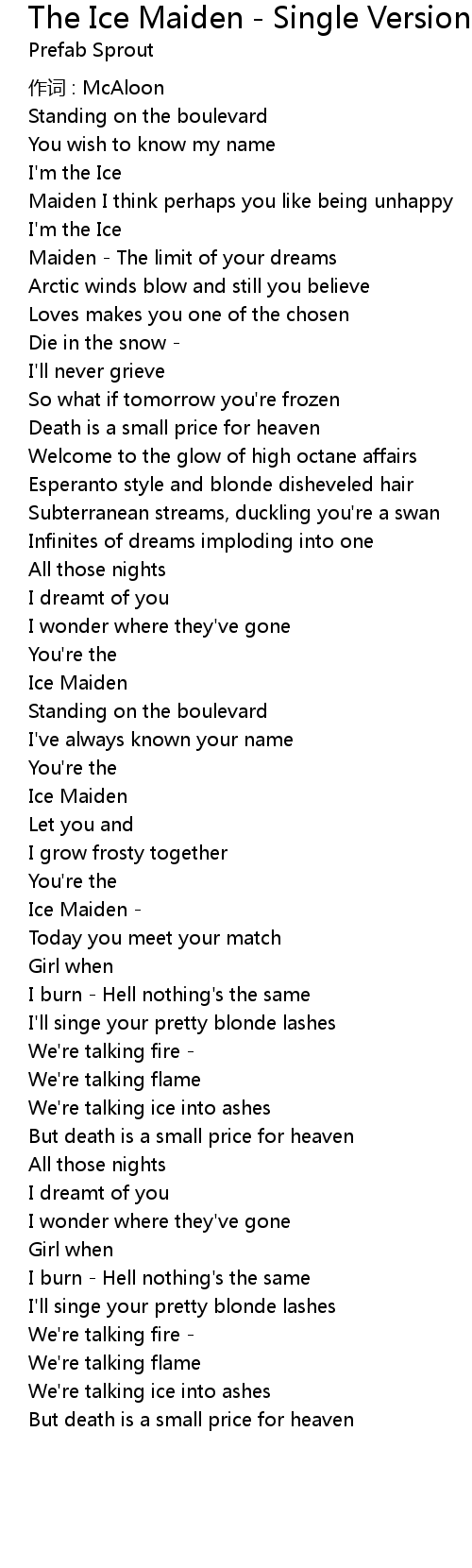 | Song | The Ice Maiden - Single Version |