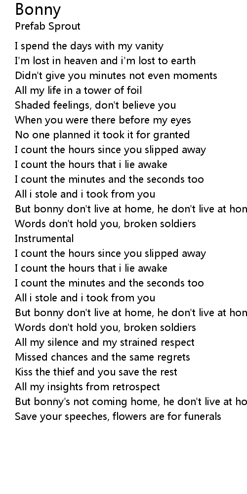 But bonny's not coming home, he don't live at home |