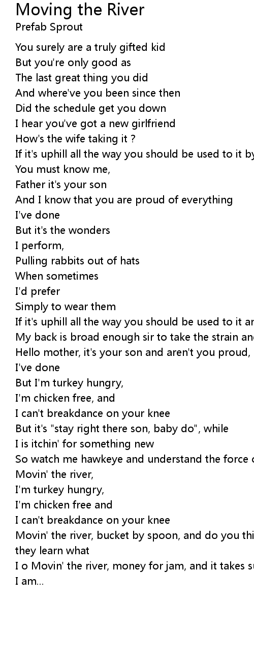 I o Movin' the river, money for jam, and it takes such an effort to stay where |