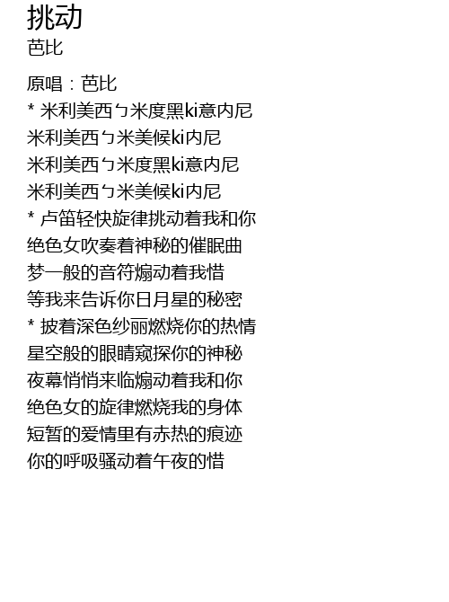 | mǐ lì měi xī mǐ měi hòu ki nèi ní | |