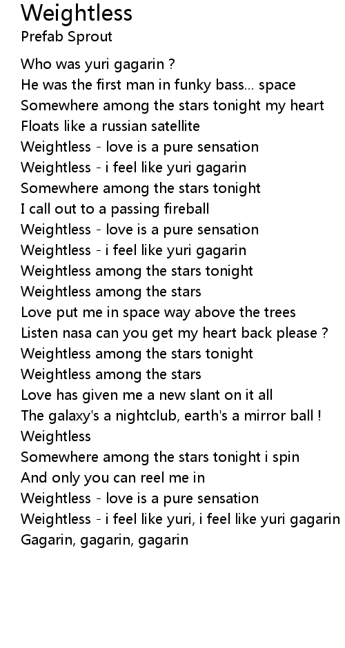 Weightless - i feel like yuri, i feel like yuri gagarin |