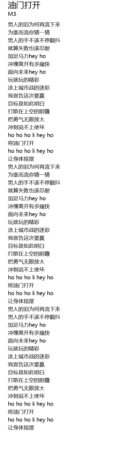 | [00:45.519] | 加足马力hey ho |