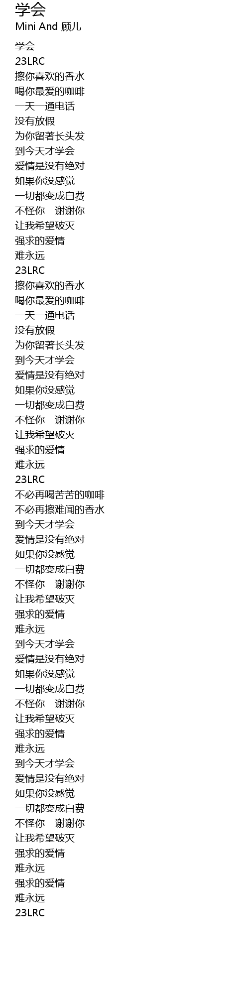 | [01:22.96] | 到今天才学会 |