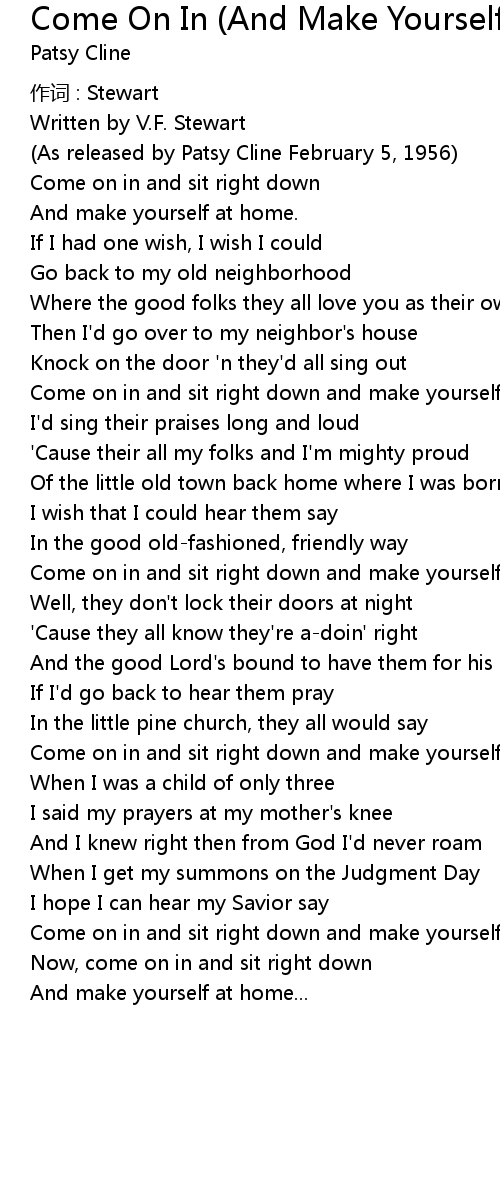 | Song | Come On In (And Make Yourself At Home) |