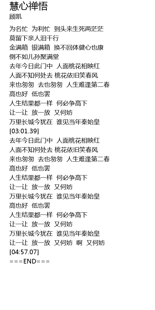 | [04:07.66] | 人生结果都一样 何必争高下 |