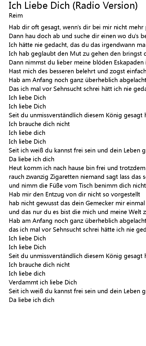 | Seit ich wei du kannst frei sein und dein Leben geht weiter auch ohne mich | |