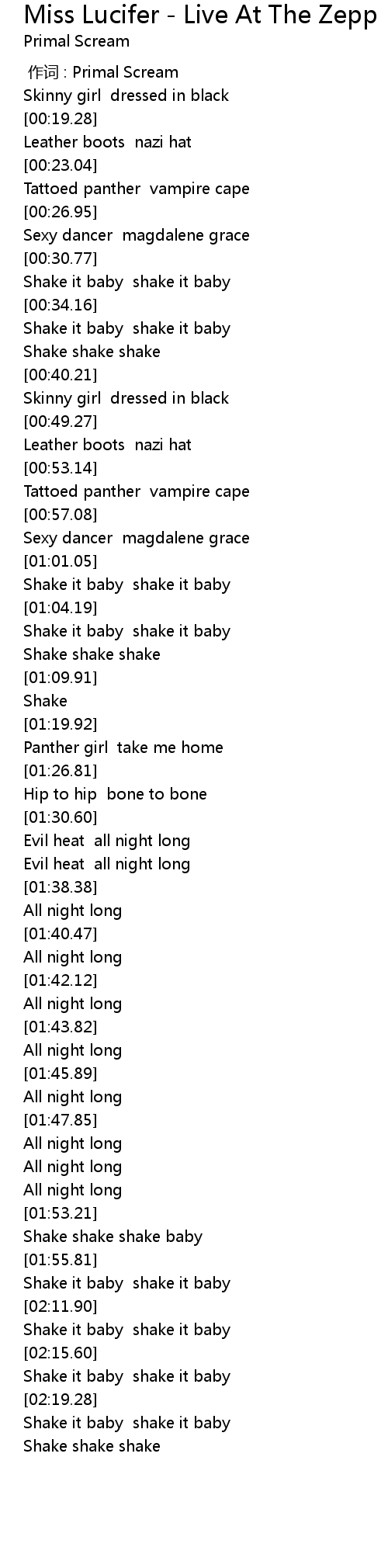 | [00:00.00] | 作词 : Primal Scream |