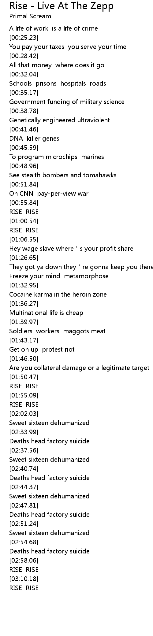 | [03:05.87] | RISE RISE |