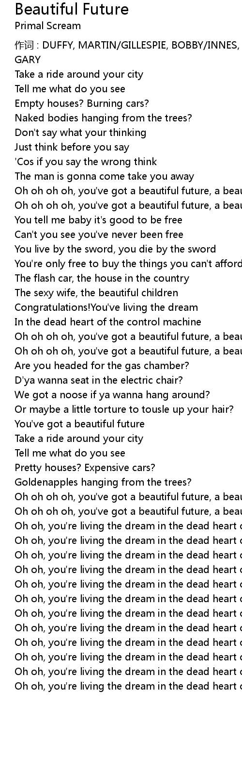 | Oh oh oh oh, you've got a beautiful future, a beautiful future | |