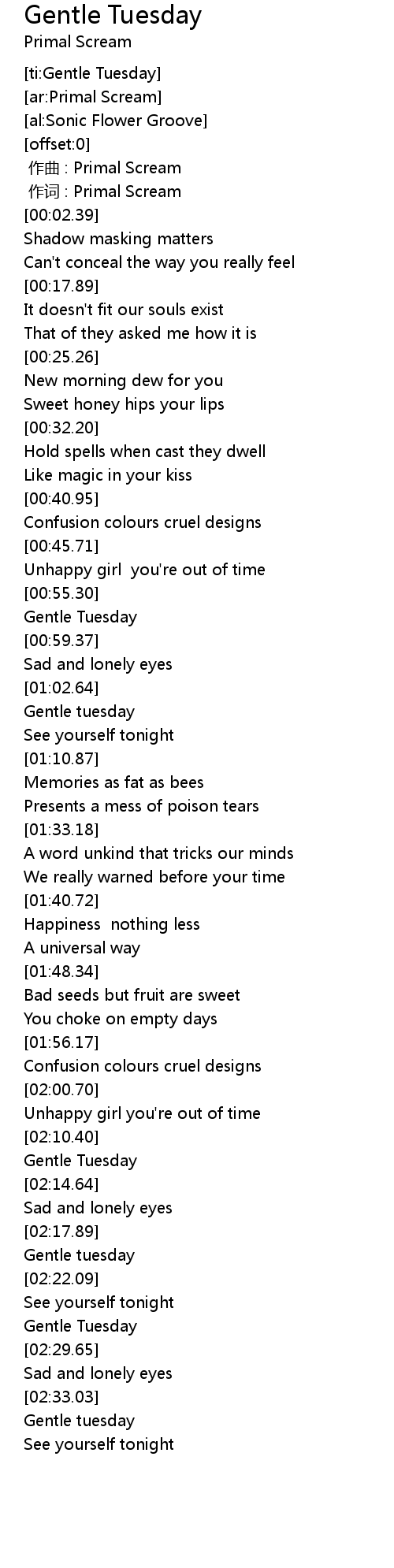 | [00:00.679] | 作词 : Primal Scream |