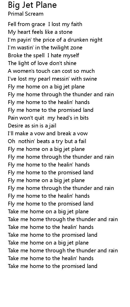 Take me home on a big jet plane |