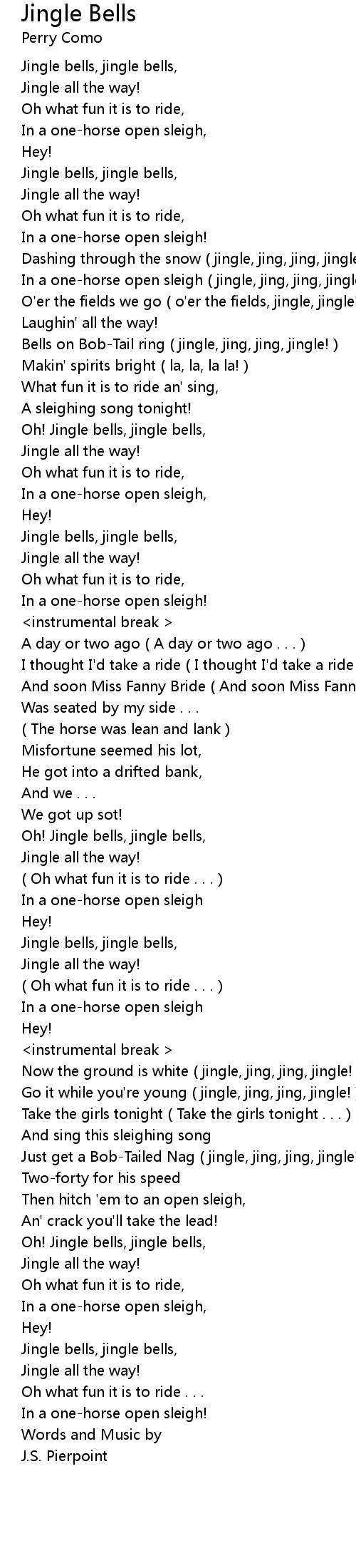 Bells on Bob-Tail ring ( jingle, jing, jing, jingle! ) |
