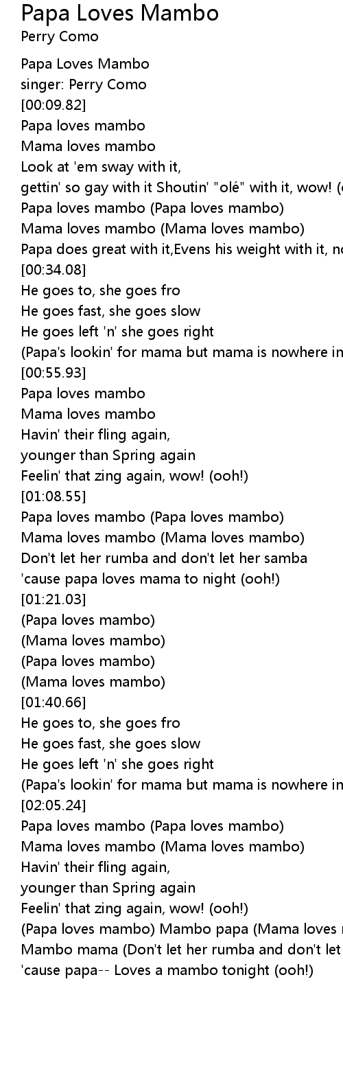 | [01:32.36] | Papa loves mambo |