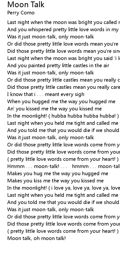 | Moon talk, oh moon talk! |