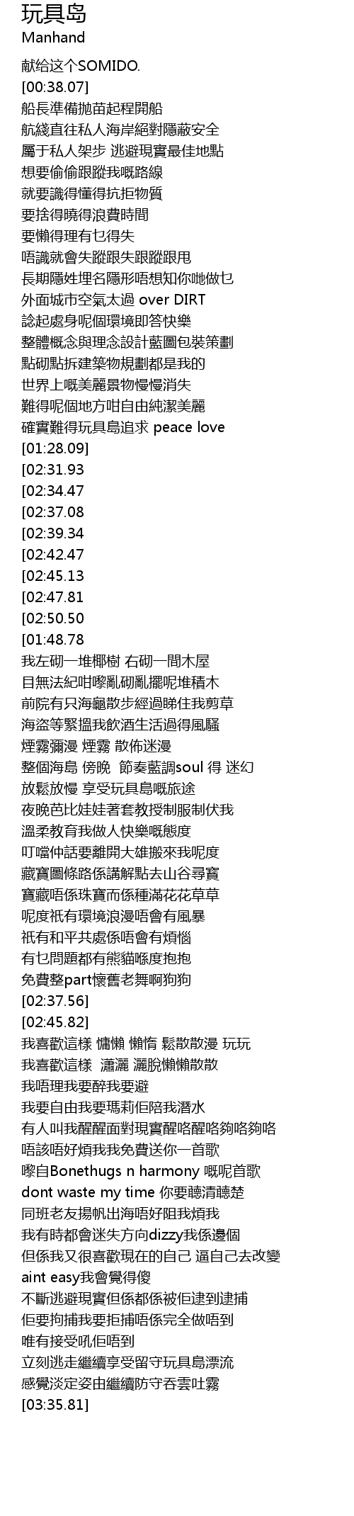 | [02:05.10] | 放鬆放慢 享受玩具島嘅旅途 |