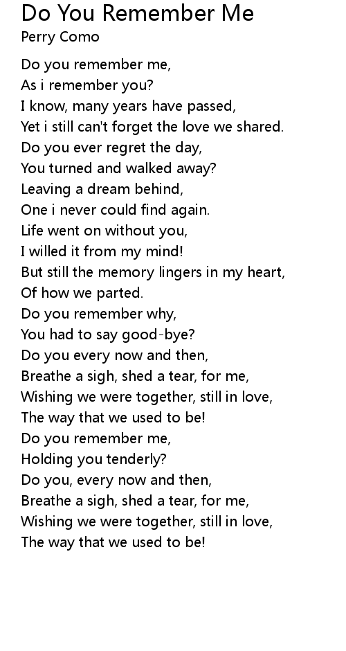 Do you remember me, |