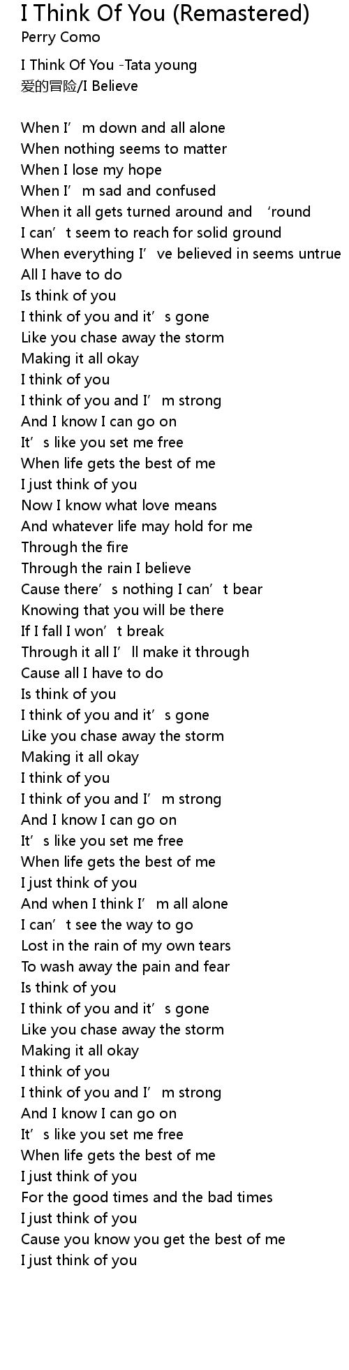 | I think of you and I' m strong | |