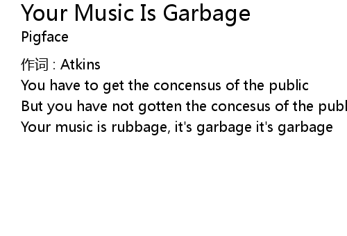 | Song | Your Music Is Garbage |