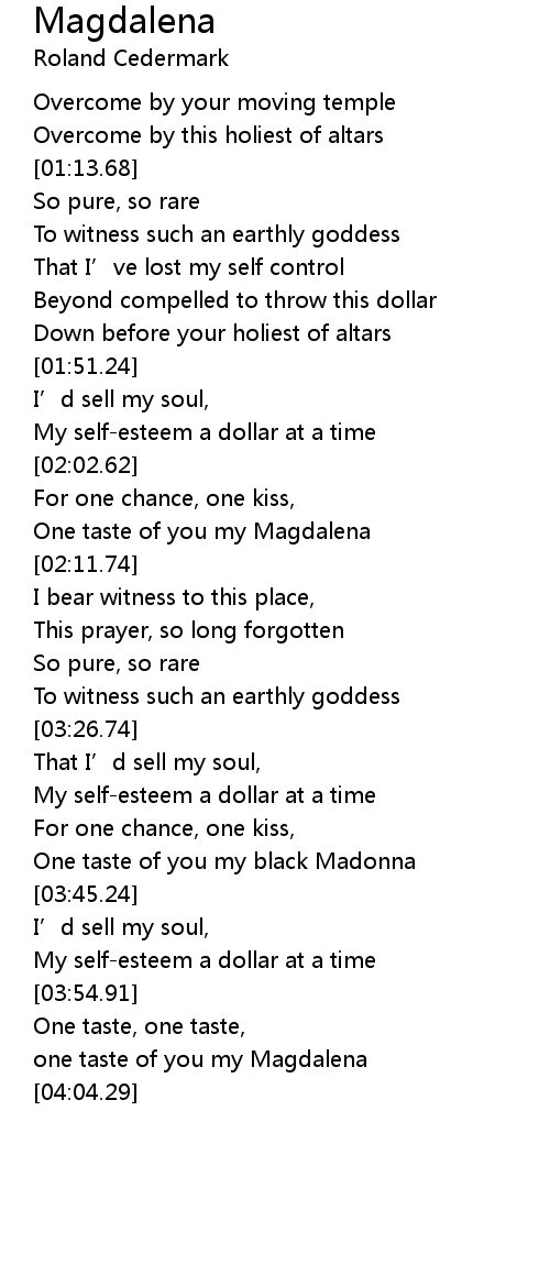 | [03:59.06] | one taste of you my Magdalena |