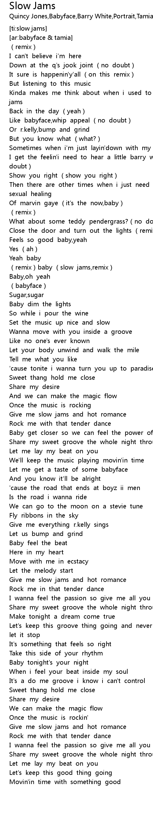 | [01:00.453] | remix baby slow jams, remix |