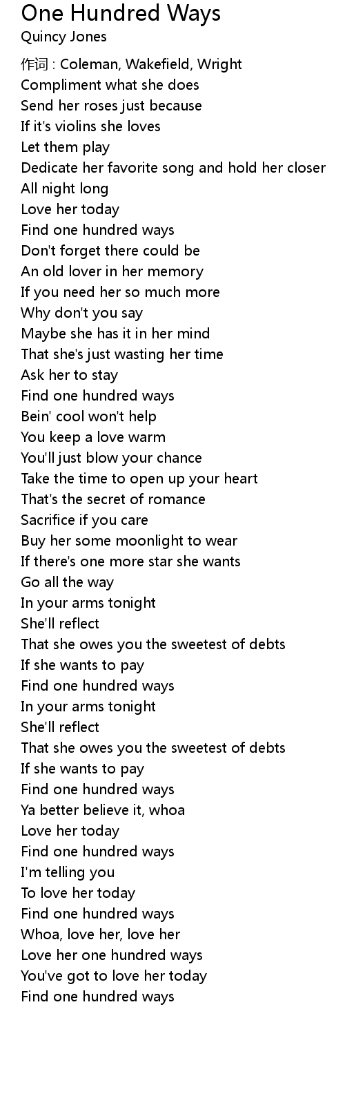 | Love her one hundred ways | |