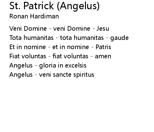 | Song | St. Patrick (Angelus) |