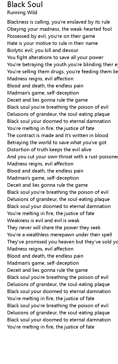 Black soul you're breathing the poison of evil |