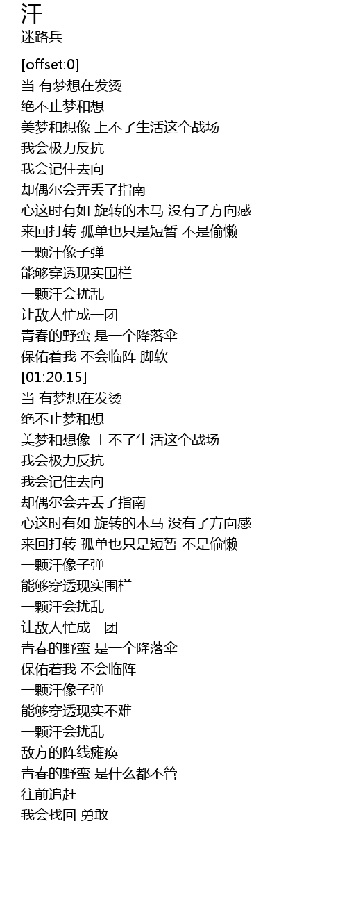 | [01:46.29] | 美梦和想像 上不了生活这个战场 |