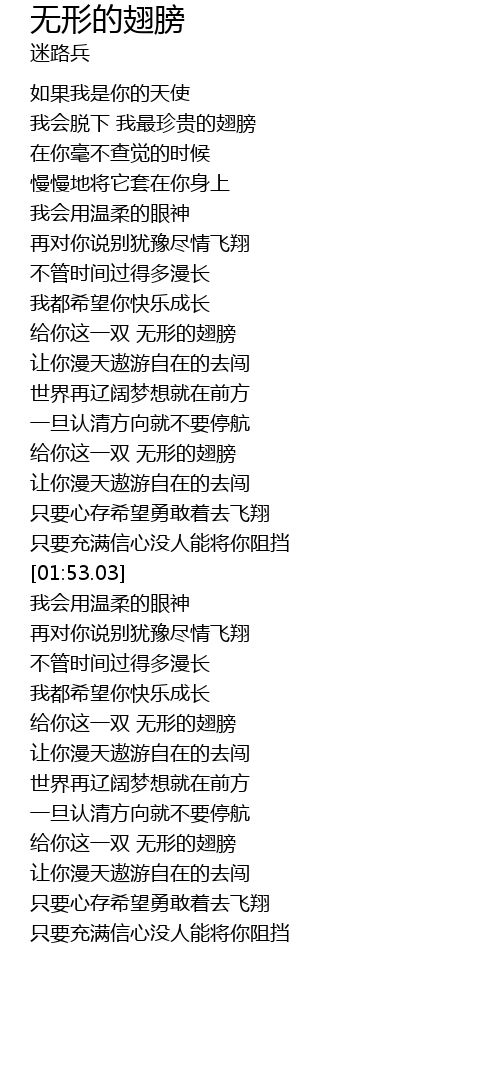 | [01:25.18] | 给你这一双 无形的翅膀 |