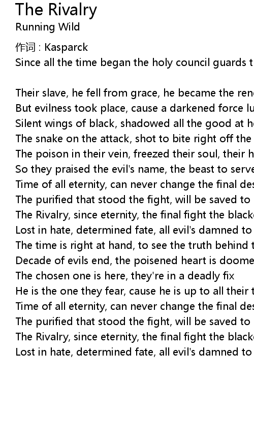 | The Rivalry, since eternity, the final fight the blackened world to free | |