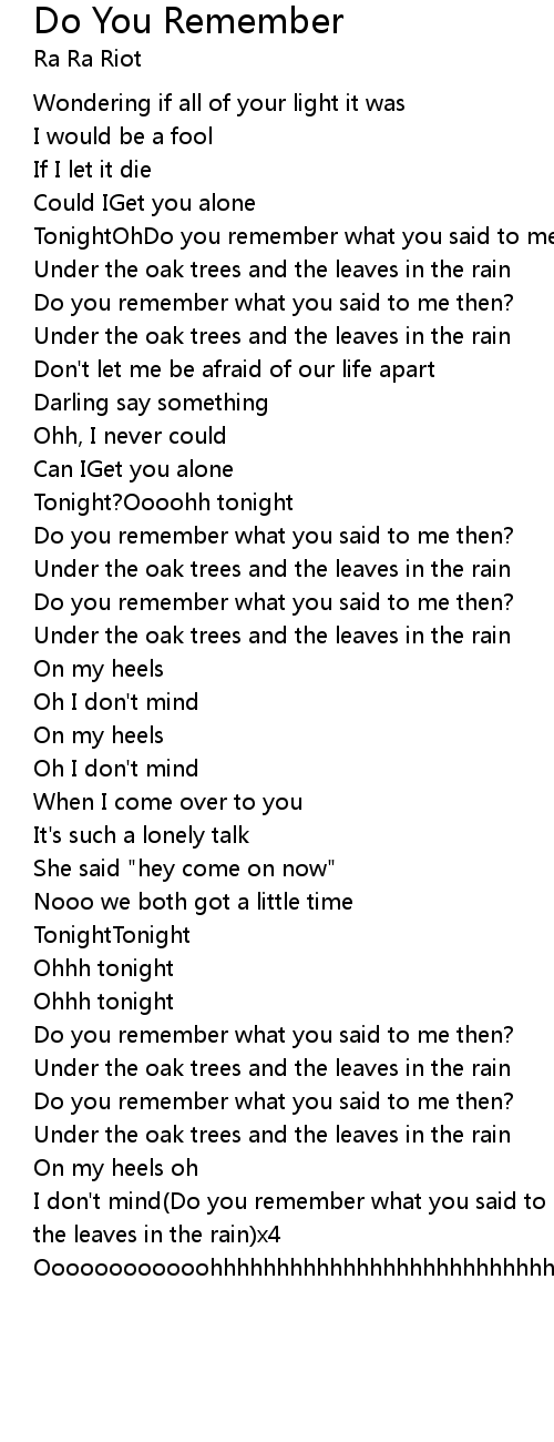 I don't mind(Do you remember what you said to me then?Under the oak trees and the leaves in the rain)x4 |