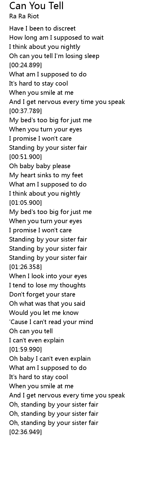 | [00:21.319] | Oh can you tell I' m losing sleep |