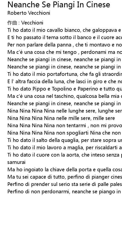 | Perfino di non perdonarmi, neanche se piango in cinese. |