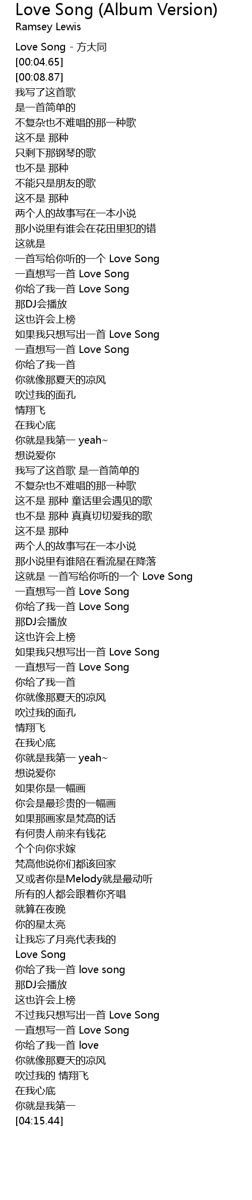 | [01:12.68] | rú guǒ wǒ zhǐ xiǎng xiě chū yī shǒu Love Song |