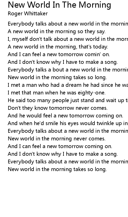 Everybody talks a bout a new world in the morning. |