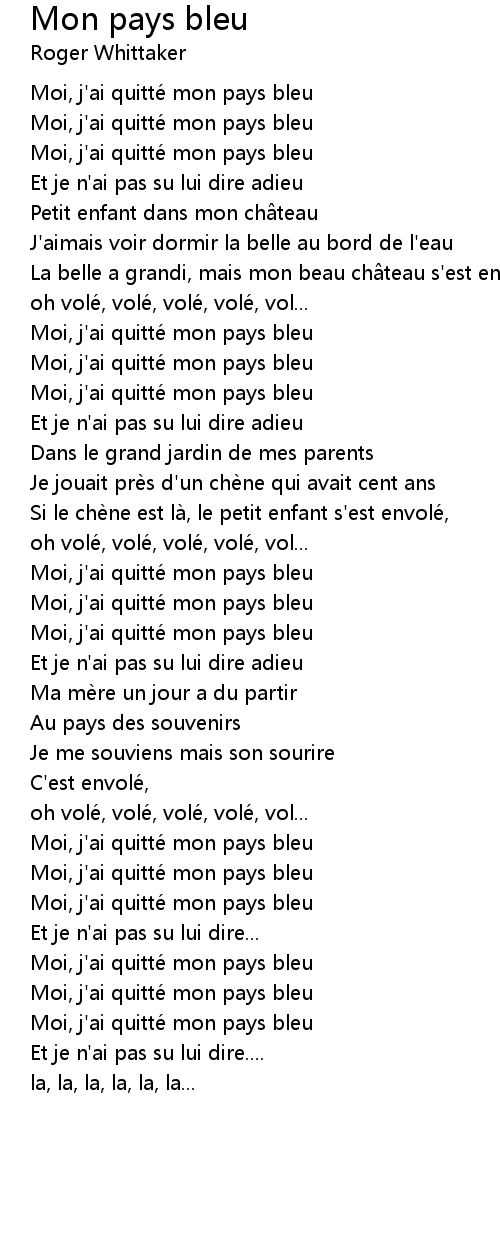 | Moi, j' ai quitte mon pays bleu | |