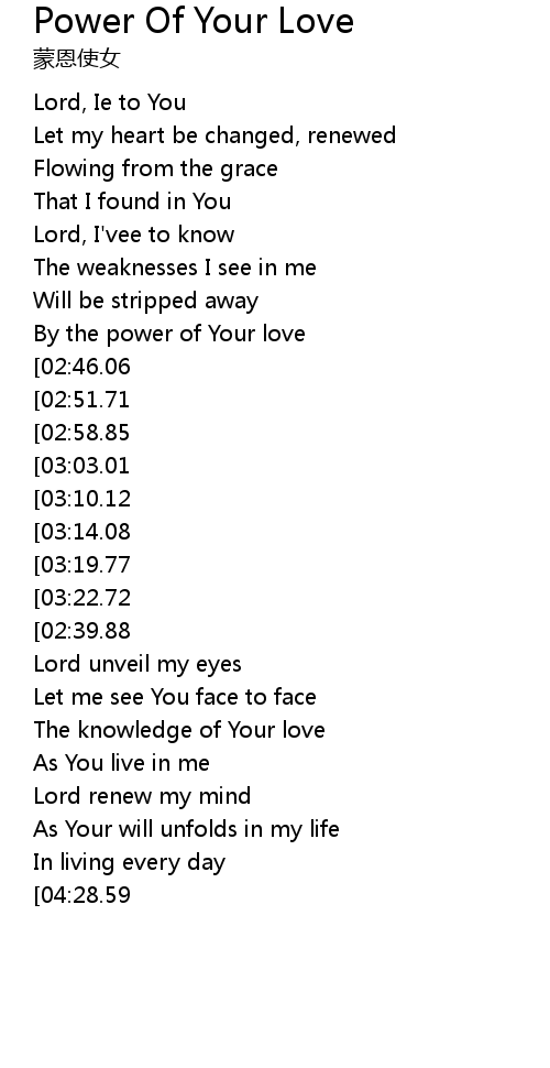 | [01:02.66] | By the power of Your love |