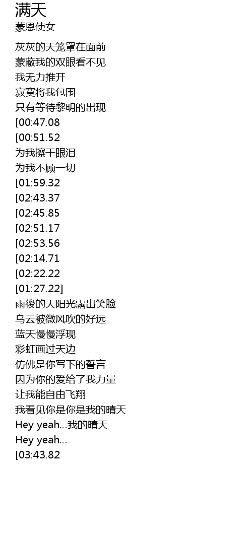 | [03:30.87] | Hey yeah…我的晴天 |