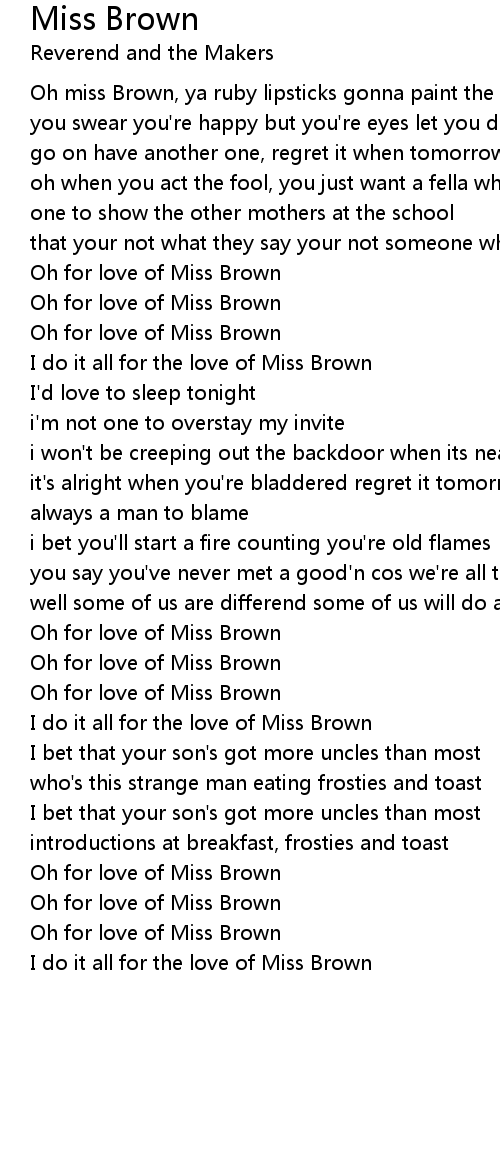Oh miss Brown, ya ruby lipsticks gonna paint the town |