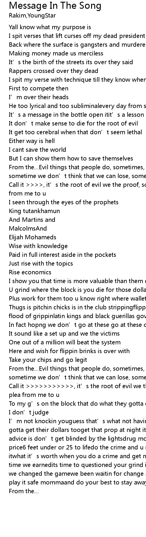 | Call it , it' s the root of evil we the proof, some times it' s a plea from me to u | |